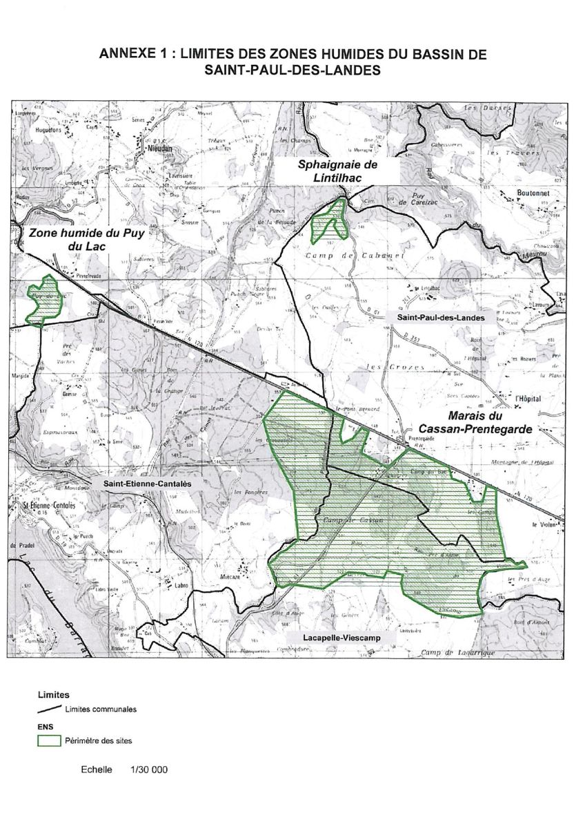 Le site Natura 2000 du Marais de Cassan et de Prentegarde couvre 507 ha sur les communes de Lacapelle-Viescamp, Saint Etienne-Cantales et Saint-Paul-des-Landes dans le département du Cantal.