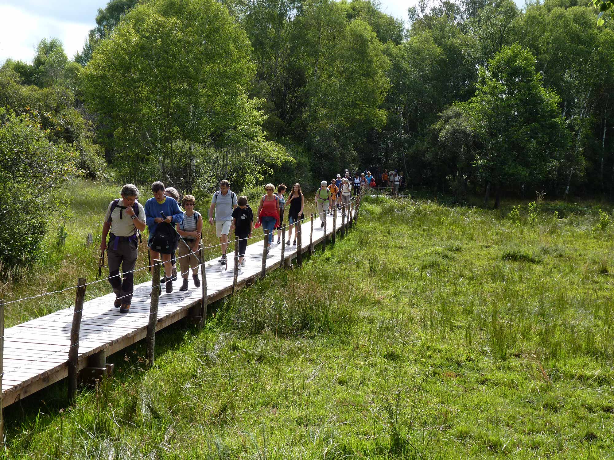 Le sentier longe la route, toujours dans la forêt, avant de pénétrer dans une zone marécageuse que des aménagements permettent de traverser sans difficulté. Il ne reste plus qu’à longer une très grande prairie pour retrouver le point de départ.